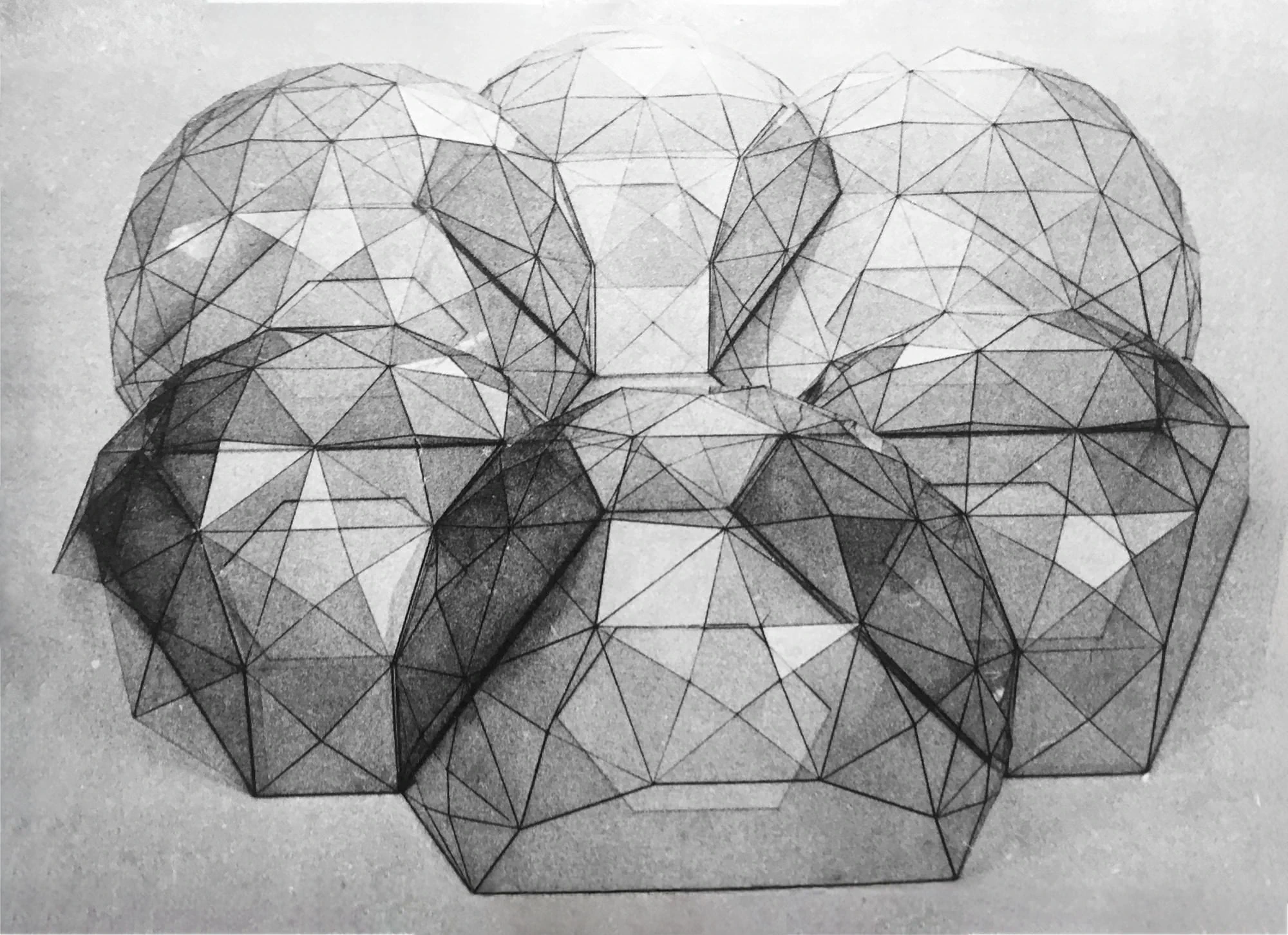 ‣ Maquette d’assemblage de six coupoles. L’Œil, juin-juillet 1970.